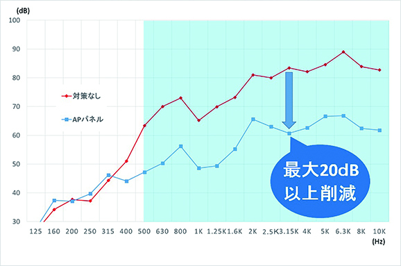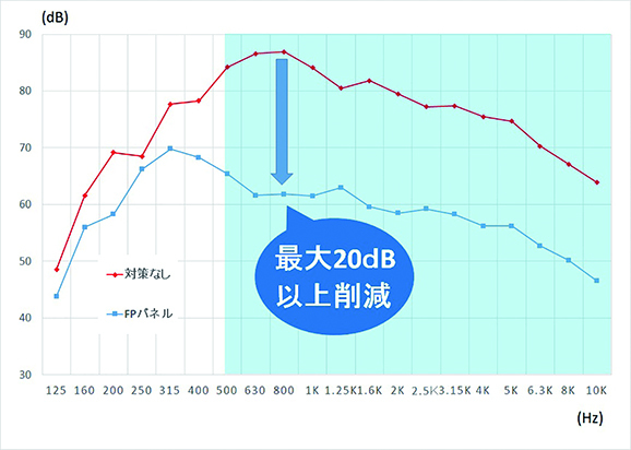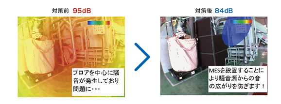 音響可視化測定器で騒音源や拡散方向を特定し、必要場箇所に防音パネルを設置する事で、耳栓を使用しなくてもよくなり意思伝達もできるようになりました。