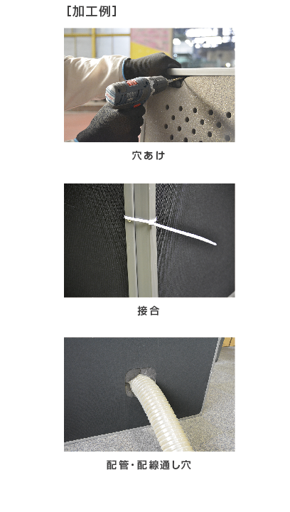接合などの加工はドリルなどで簡単に穴開け加工は出来ます。結束バンド、針金などで固定してください。